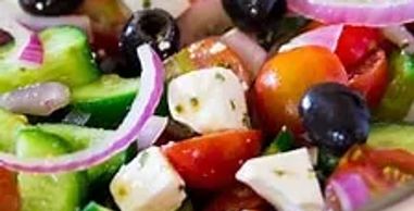 Preparation: Gather your ingredients. You’ll need tomatoes (chopped), cucumbers (chopped), olives, feta cheese (crumbled), olive oil, and lemon juice.